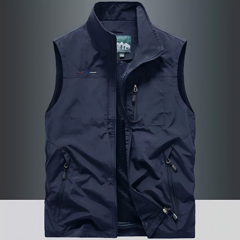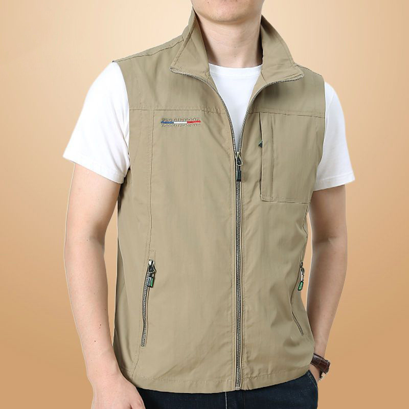 カジュアル速乾馬甲男性薄手ポケット立襟アウトドア釣り春秋コートベスト撮影大サイズ工装