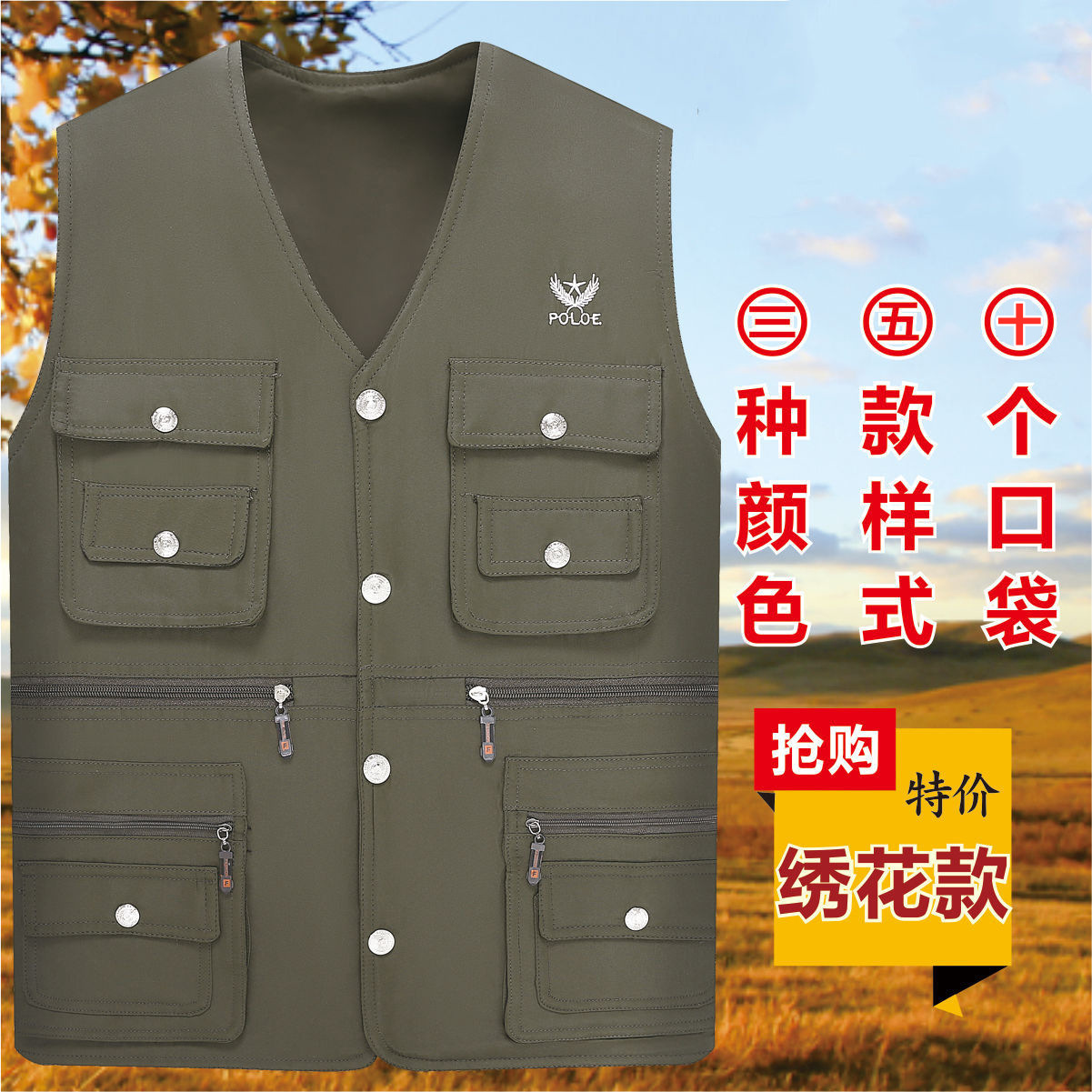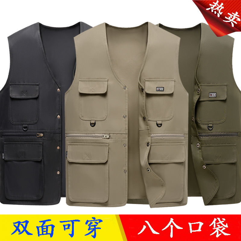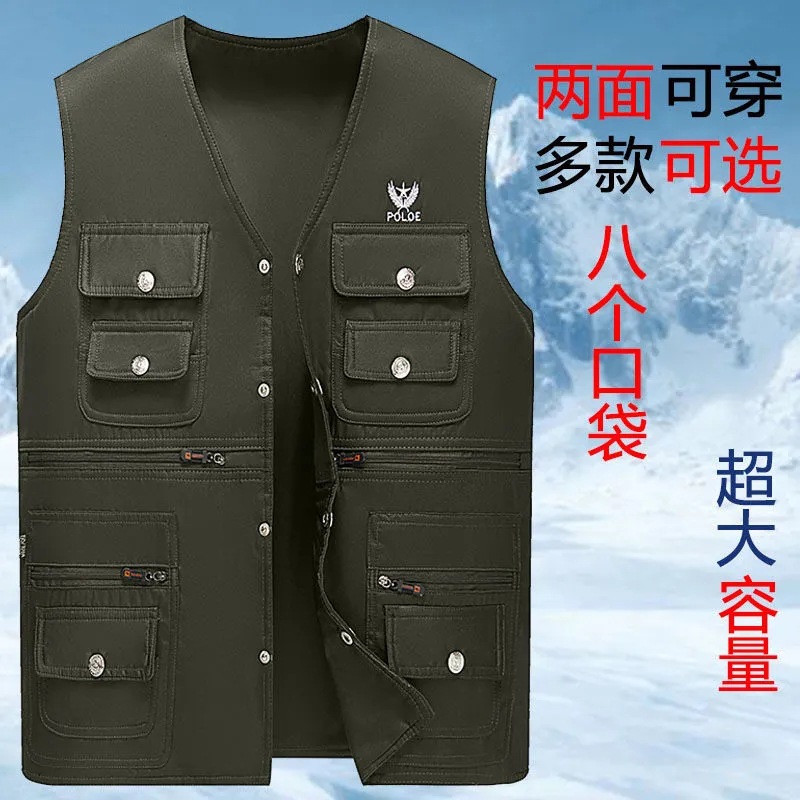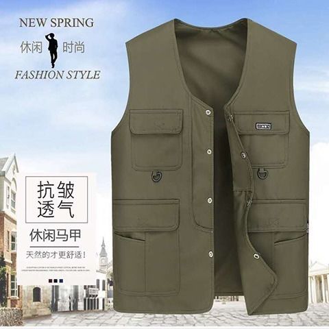 中高年男性春秋夏の薄手の多ポケットアウトドアベスト