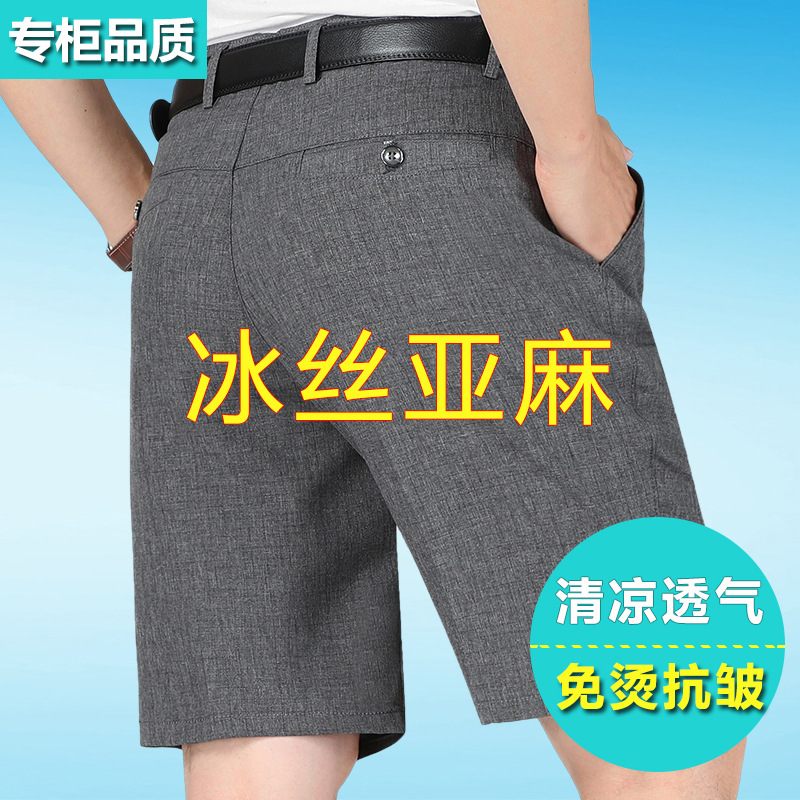 ハイエンドのお父さんのスーツの半ズボンの中年の男性の5分のズボンの薄いタイプの中高年の氷の糸のカジュアルなゆるい亜麻の半ズボン