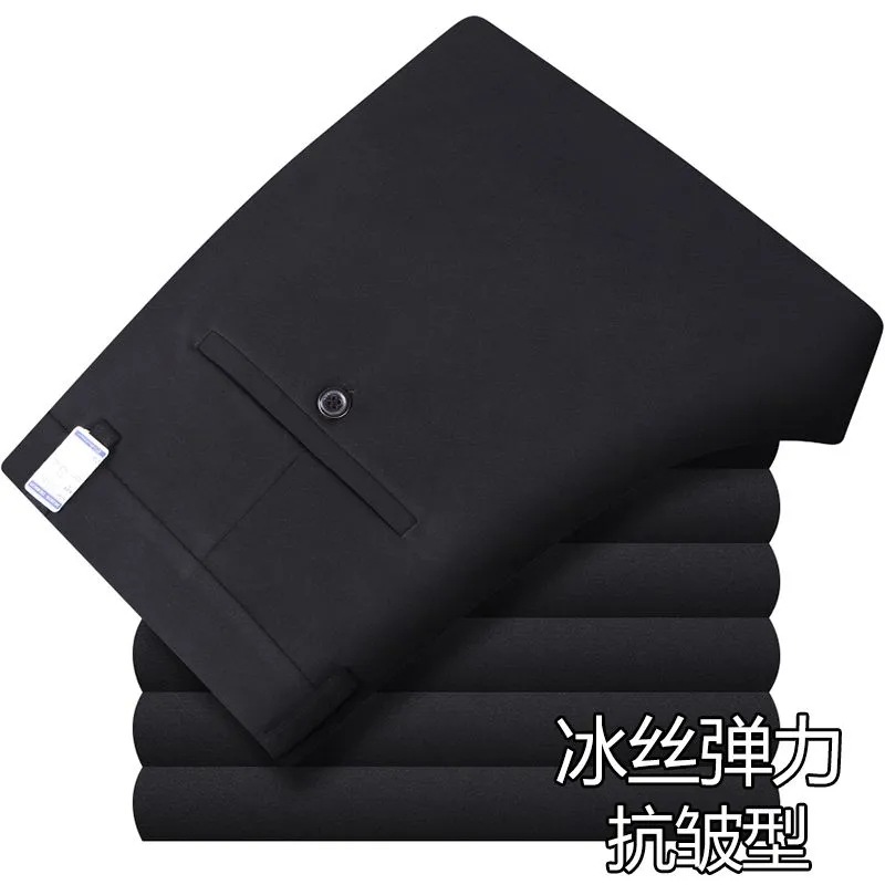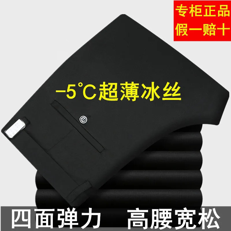 ズボンの男性の夏の薄いタイプの抗シワの熱いビジネスのズボンの中年の男性のシルクの材料の高い腰のゆったりしているレジャーのズボンのスーツのズボン
