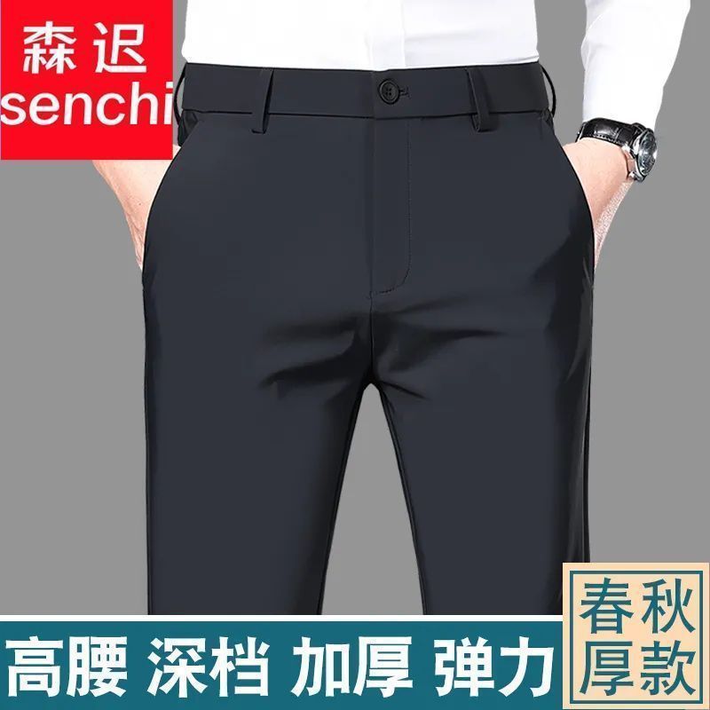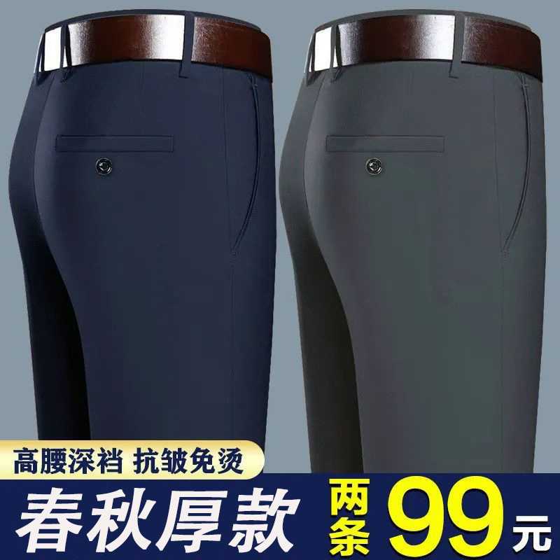 【69両】2024新型春秋厚金男性ビジネスカジュアルズボン高腰深股抗シワ無熱z 1