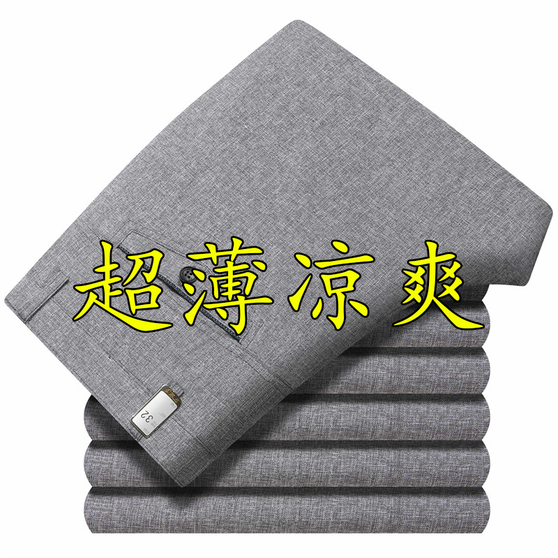 森遅高端氷糸カジュアルパンツ男夏の薄いタイプの高弾力無熱ビジネスズボンの垂直感ストレートパンツ男