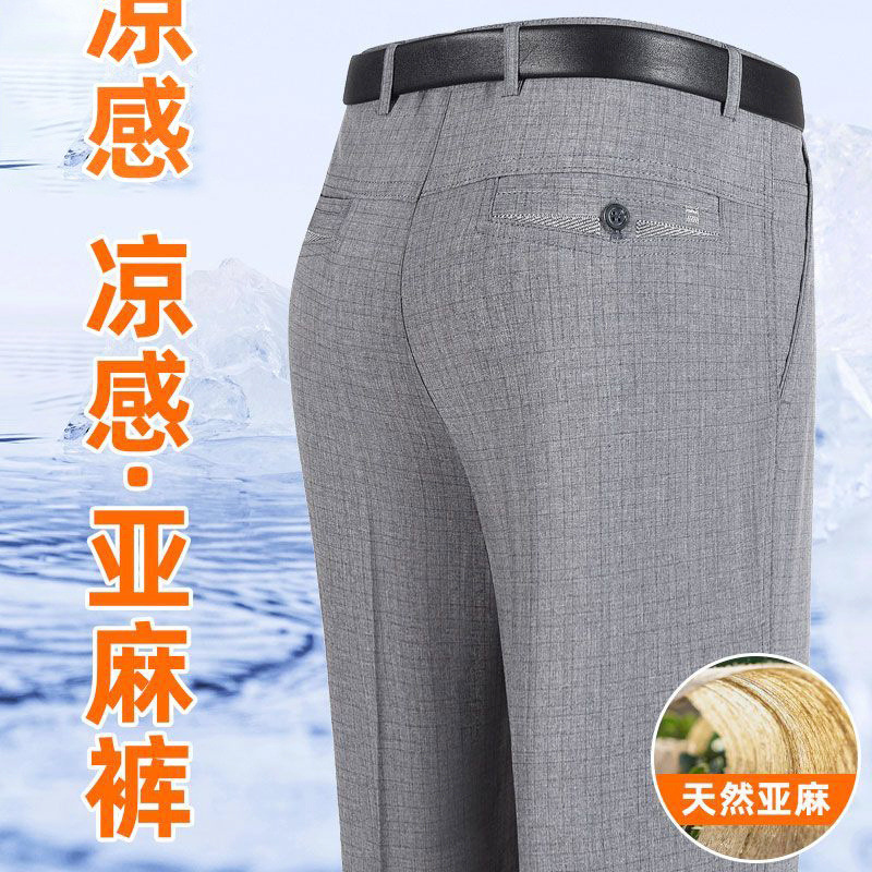 ライトラグジュアリーアイスシルクリネン夏の新しいスタイル中年お父さんズボンルーズストレートビジネスカジュアル大きなズボン