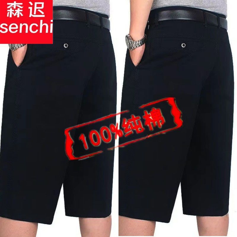 夏の純綿クロップドパンツカジュアルパンツお父さんハイウエスト中高年スーツショーツ7点新しい中国風メンズ薄手スタイル