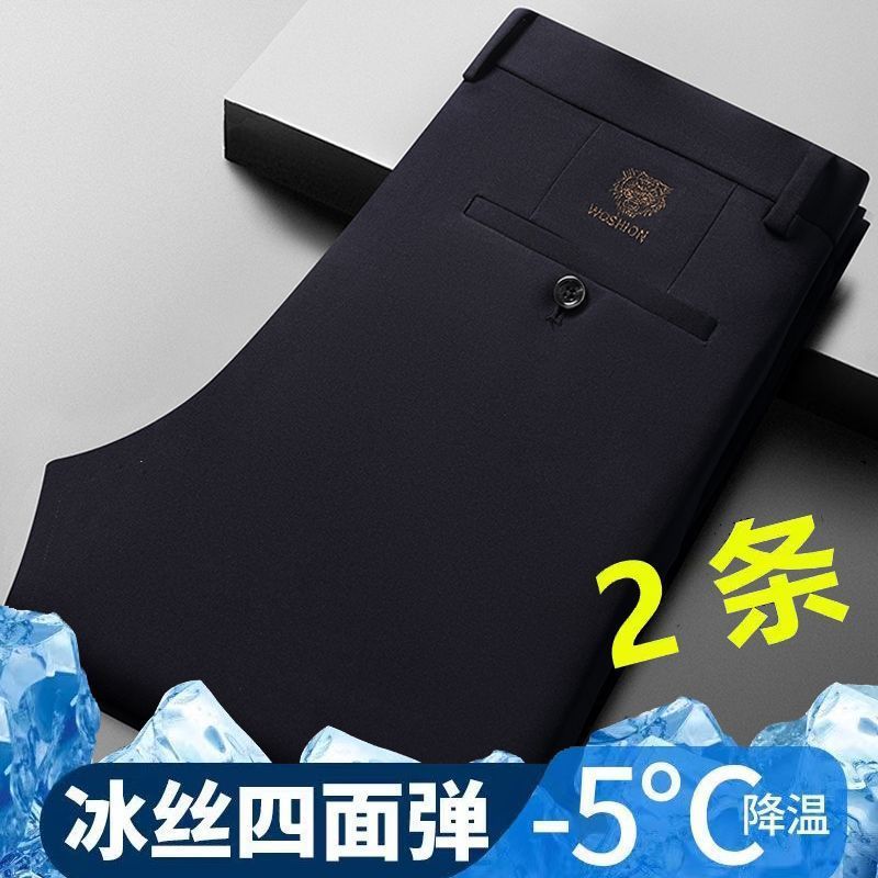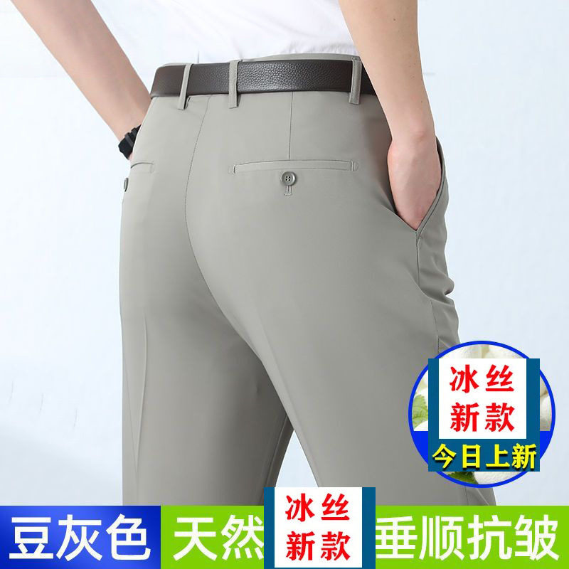 メンズ夏薄氷シルクスーツパンツ中年男性用ハイウエストルーズノンアイロン抗シワビジネススーツパンツ