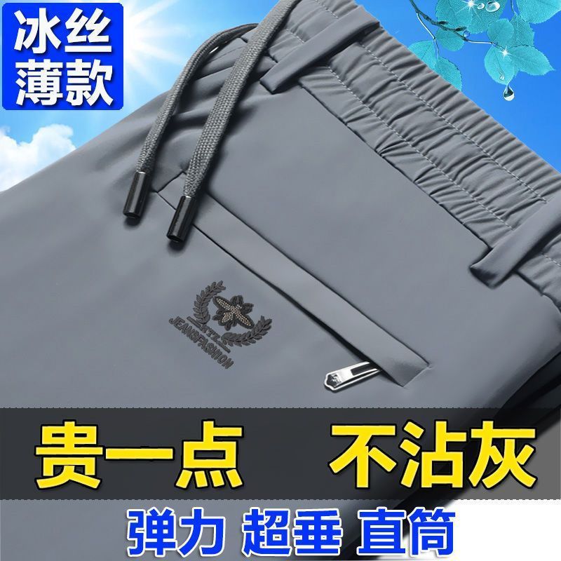 【アイスシルククール】四面ストレッチ夏薄手メンズカジュアルパンツストレートアイスシルククール高弾性速乾パンツ