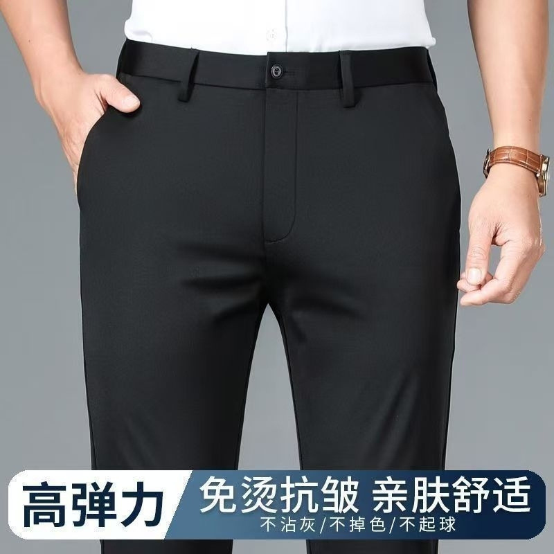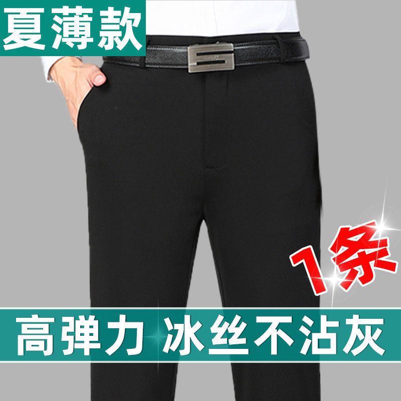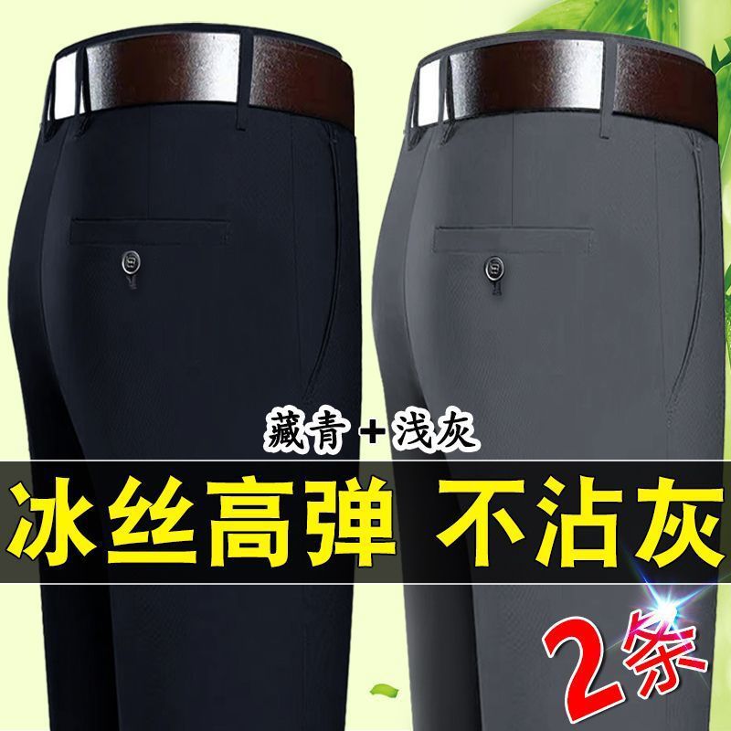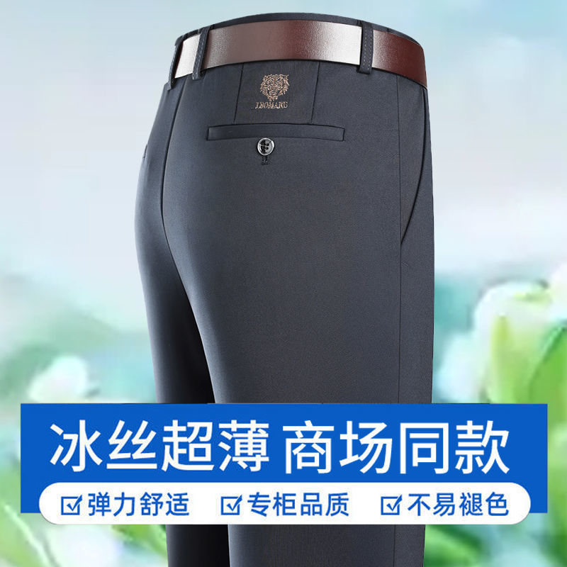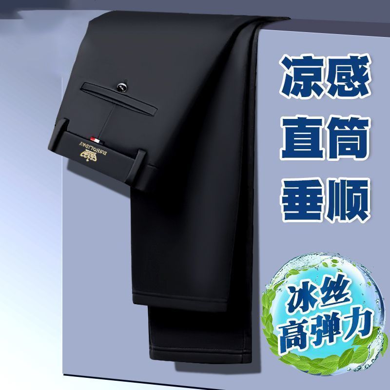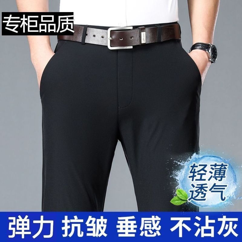 夏薄いメンズパンツ高弾性ストレートルーズ抗シワカジュアルパンツ新しいアイスシルクビジネスメンズパンツ