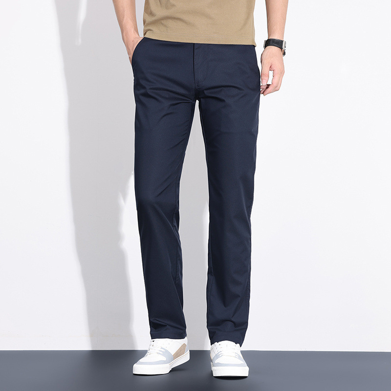 高級メンズカジュアルパンツ、アイスシルクストレッチ薄手パンツ、ゆったりストレート、ノンアイロン、高伸縮、ハイウエストビジネスメンズパンツ