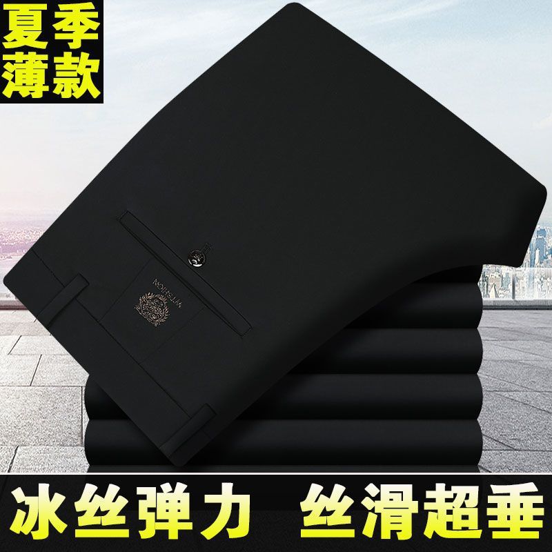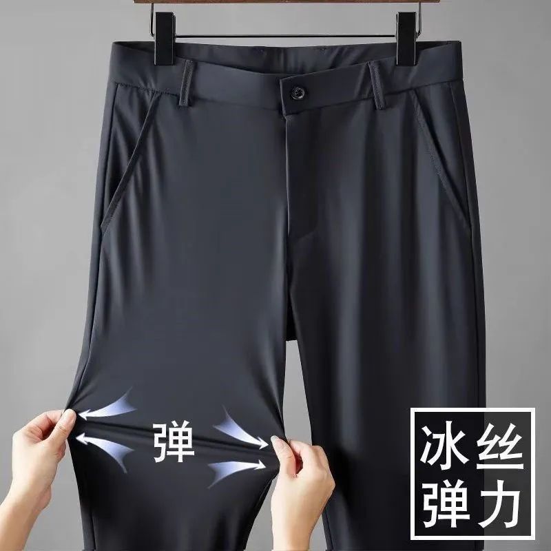 メンズ夏薄氷シルクパンツビジネス高級軽量高級紳士服ドレープ高弾性ハイウエストストレート抗シワノンアイロン
