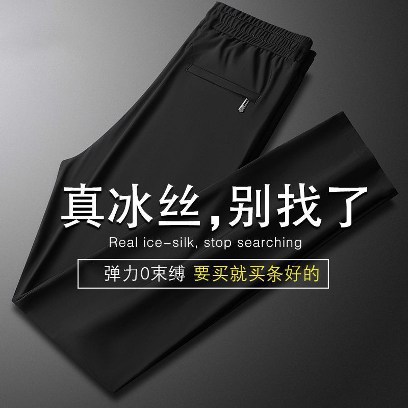 ストレートスポーツパンツ氷糸男性カジュアルパンツ高腰ストレート男性パンツ新マイクロ弾高級夏薄手長ズボン