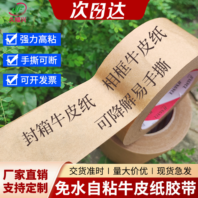 分解性封箱包装クラフト紙テープ高粘手裂きやすい自己接着性テープ印刷ロゴ