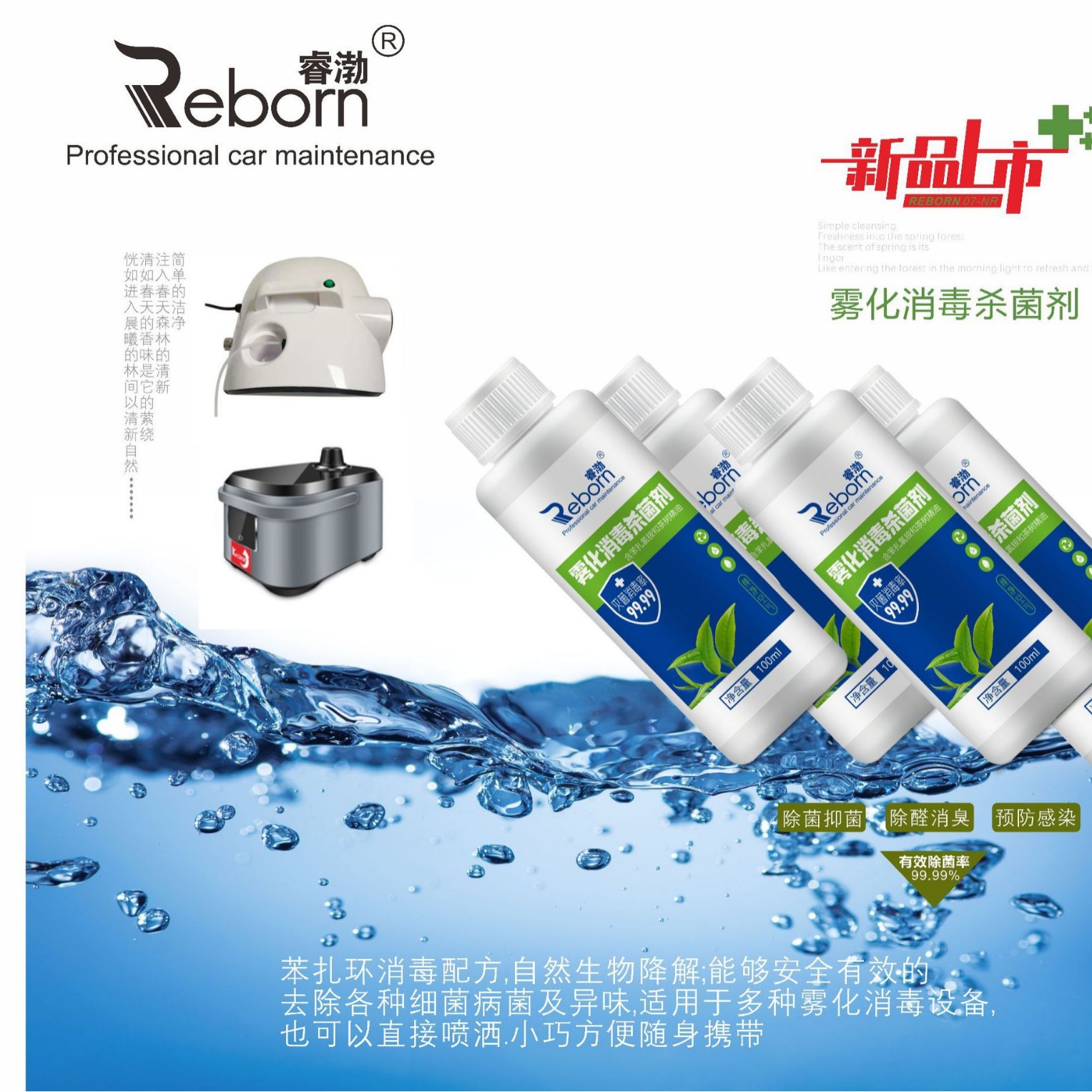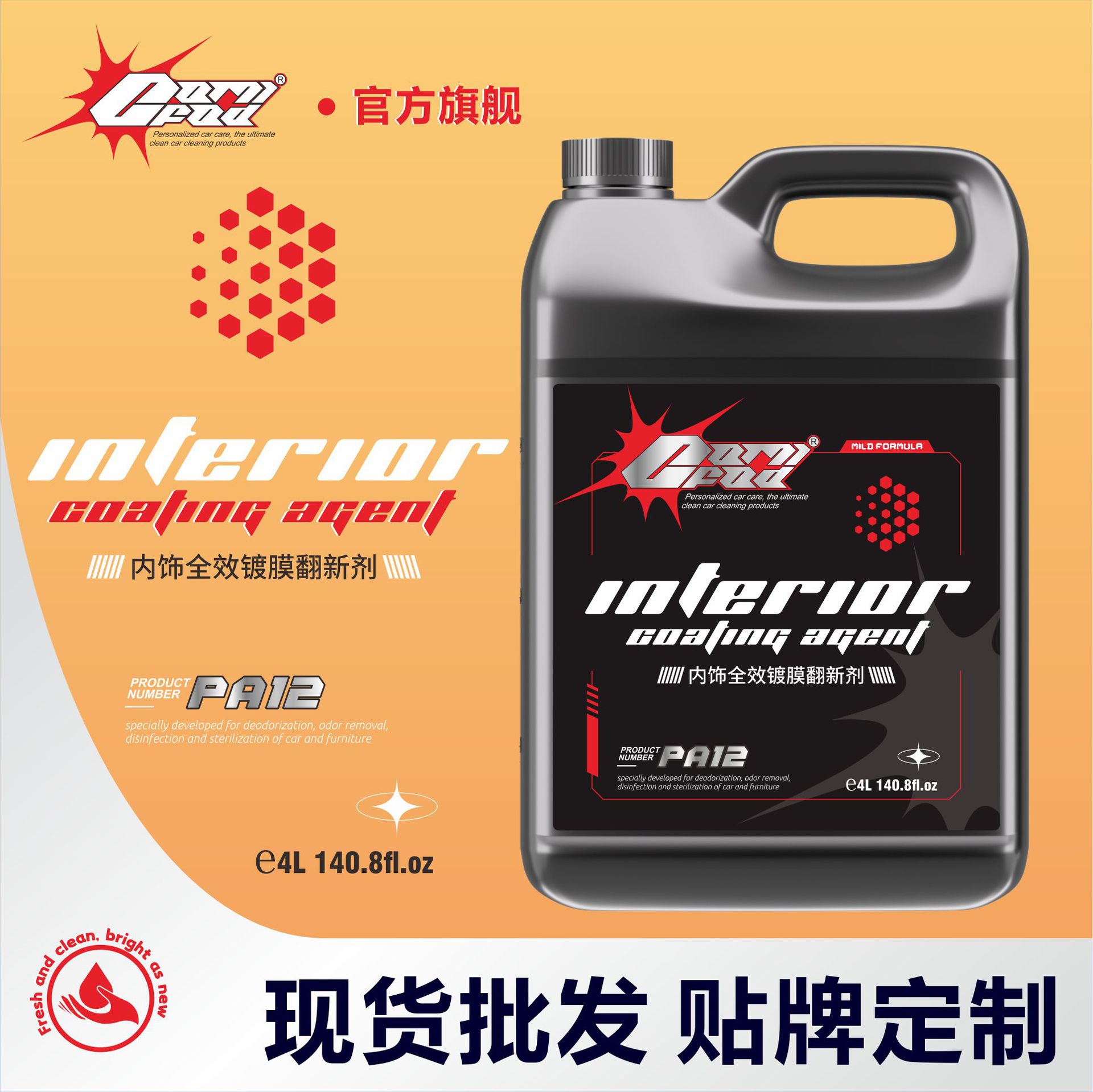 睿渤ブランドの絨毛天井洗浄剤濃縮型1:20希釈自動車内装の清潔内装に光メッキ膜がついている