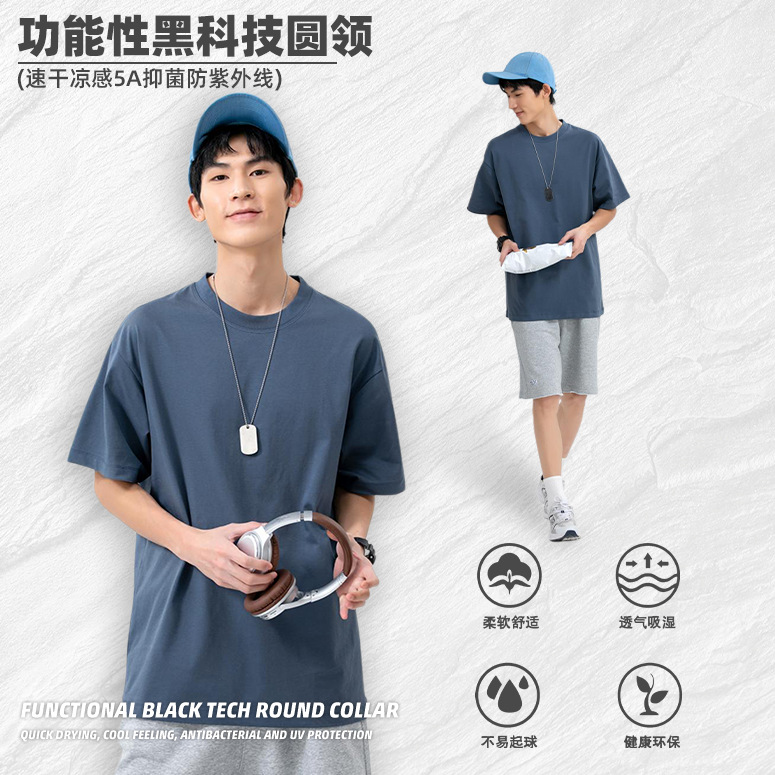 ソロナミントtシャツ240グラム重ポンド速乾涼感抗菌軽屋外丸襟半袖黒科技丸襟t