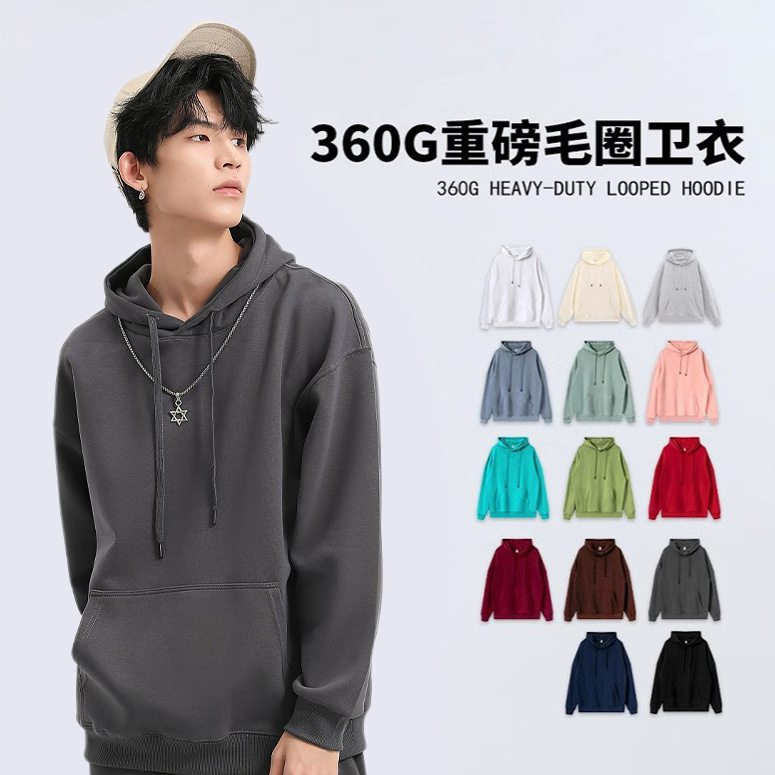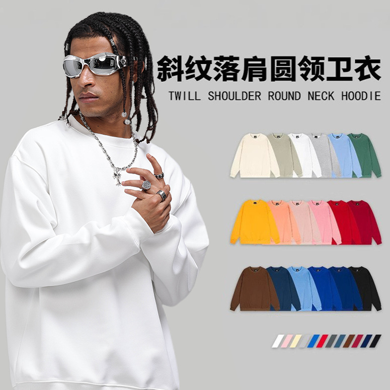 2024 秋冬若者ルーズカジュアルトレンディブランド肥厚スウェットメンズパーカー男性無地スウェットレトロドロップショルダー