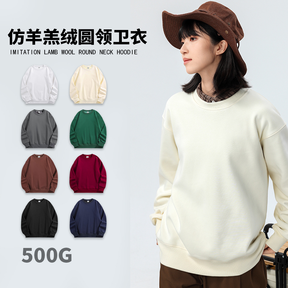 秋冬500グラムの重ポンドの衛衣は羊の小毛の丸首をまねて、厚い潮牌の高品質の純色の卸売りをプラスします。