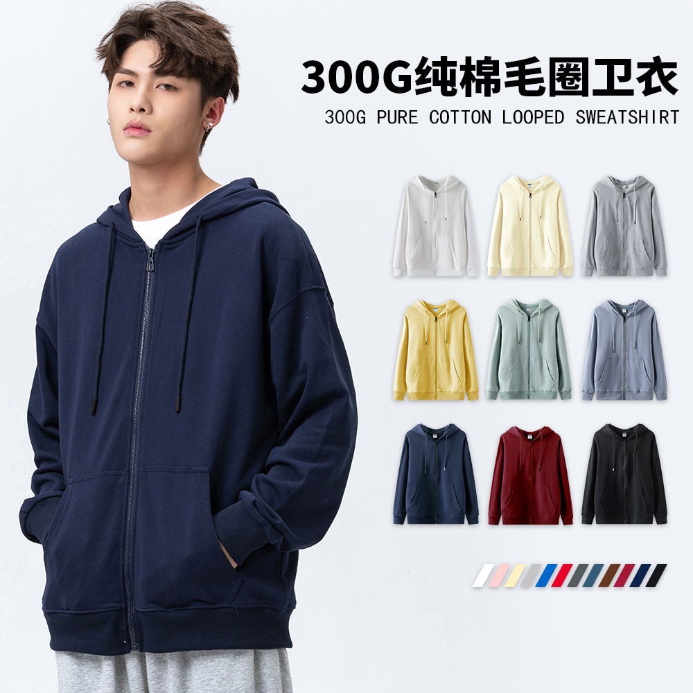 2024 秋と冬の新ヘビーテリーフード付きジッパースウェットシャツ男性と女性のカーディガントップ無地カジュアルルーズジャケット