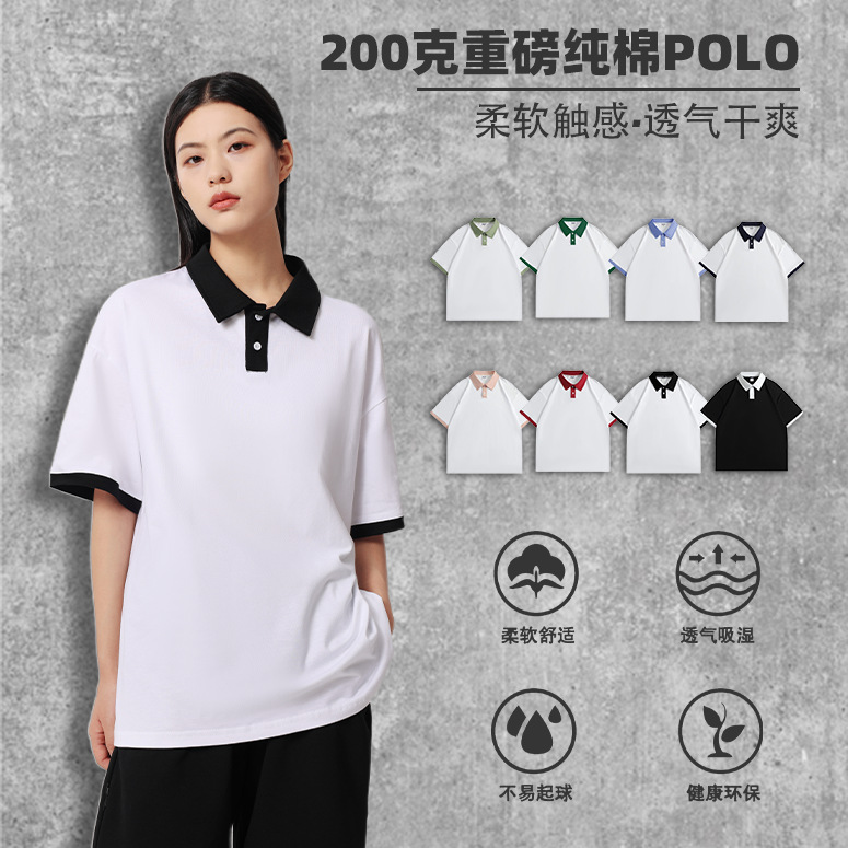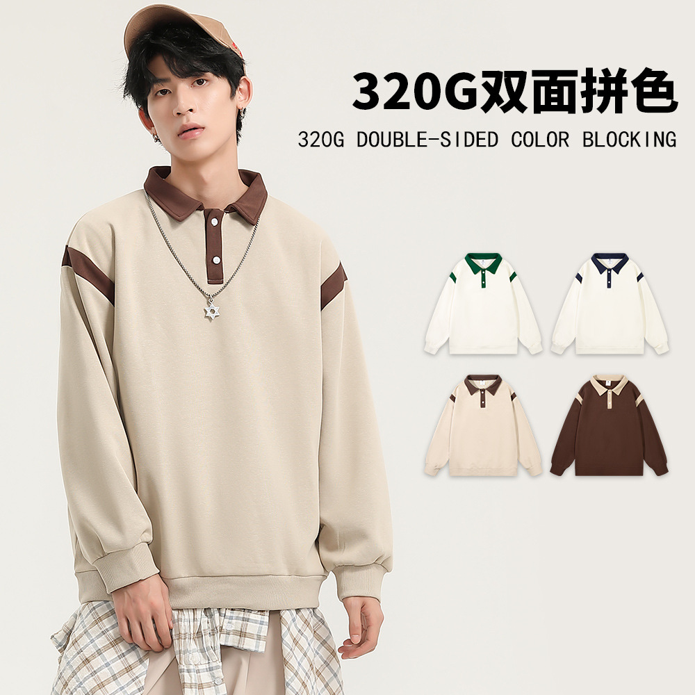 320G華綿製、コントラストカラーの襟付きスウェットシャツ、男女兼用、カジュアルでゆったりとしたシンプルな長袖ポロシャツ、レディースファッションブランド、カジュアルで多用途