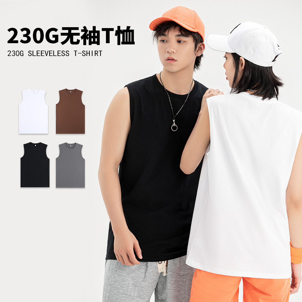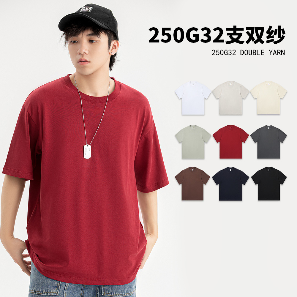 2024春夏モデル230g日系重ポンド純綿夏の広い肩の小さい襟元の純色のゆったりした男女のベストtシャツ