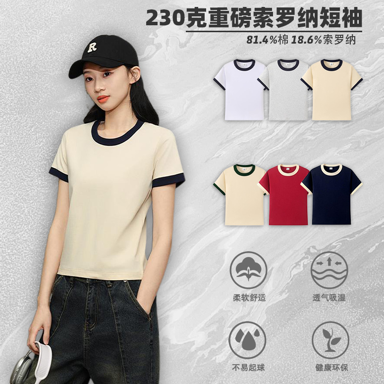 肩の半袖tシャツの女性230gソロナの色合わせの丸首tシャツのギャル風の修身はやせています。