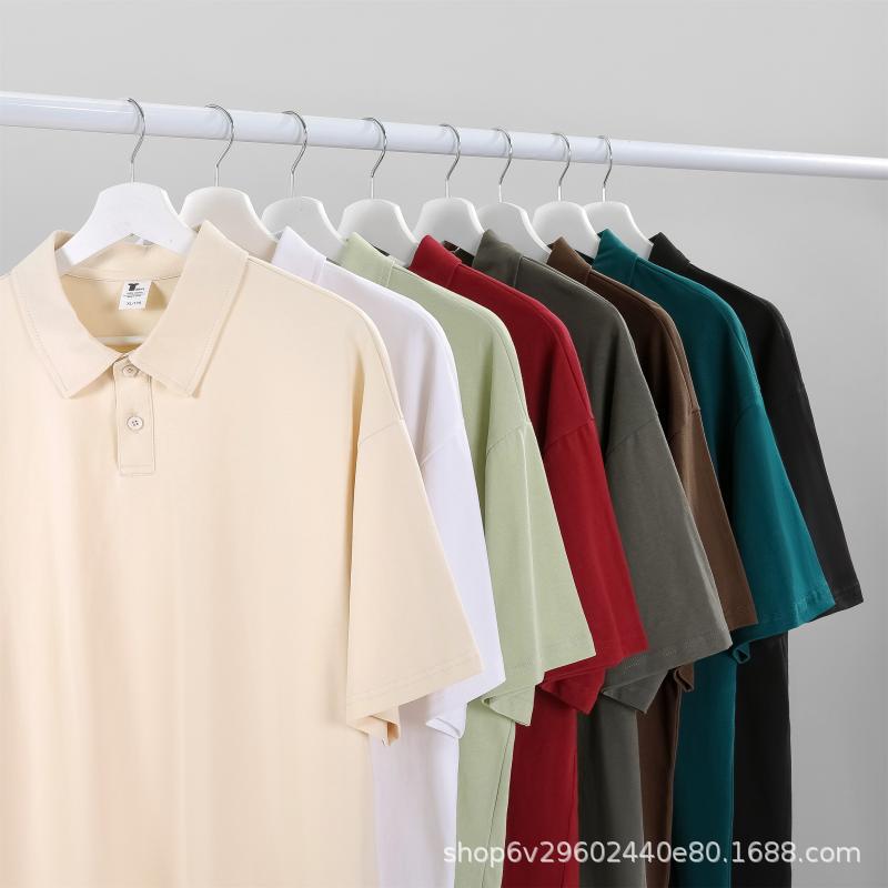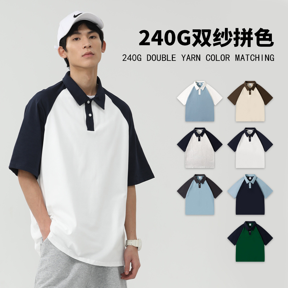 アメリカンブリティッシュトレンドブランドポロシャツ純綿オフショルダーTシャツ半袖男女同型ラペルルーズカラーブロッククラスユニフォーム