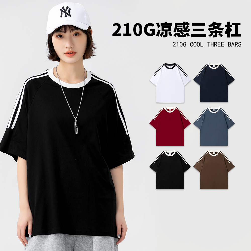 2024年夏新作 210g 冷感純綿 三本線 オフショルダー 半袖 万能トップス アメリカンレトロTシャツ 通気性