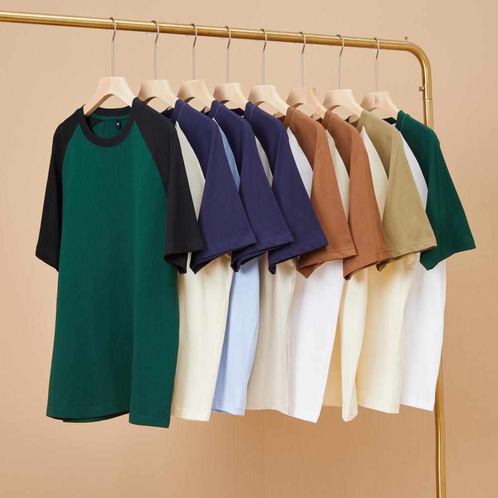 240G ラグラン袖配色半袖Tシャツ 男女兼用 ゆったり 綿100%トップス レディース 配色 マウンテンスタイル 欧米風 ins ラグラン袖