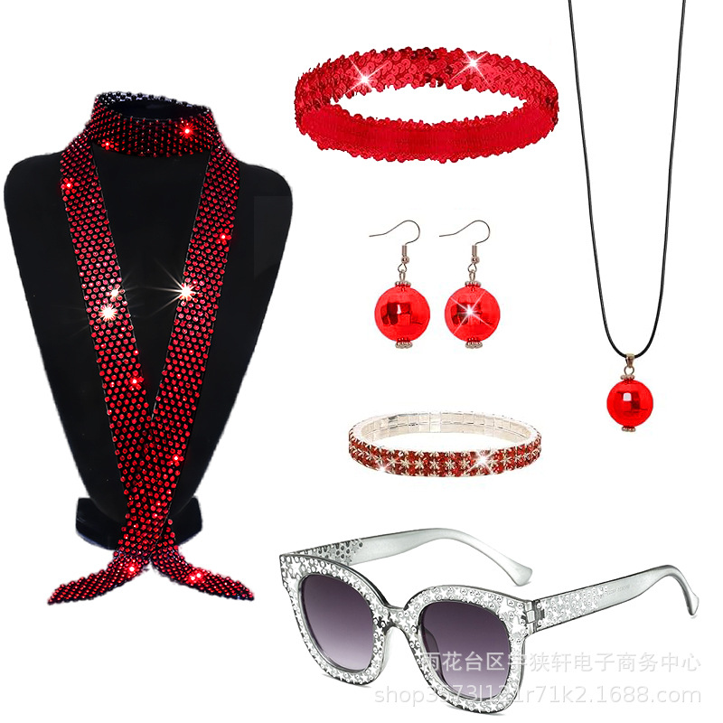 70年代ディスコアクセサリースパンコールサングラスネックレスイヤリングドリルスカーフダイヤモンドブレスレットセット