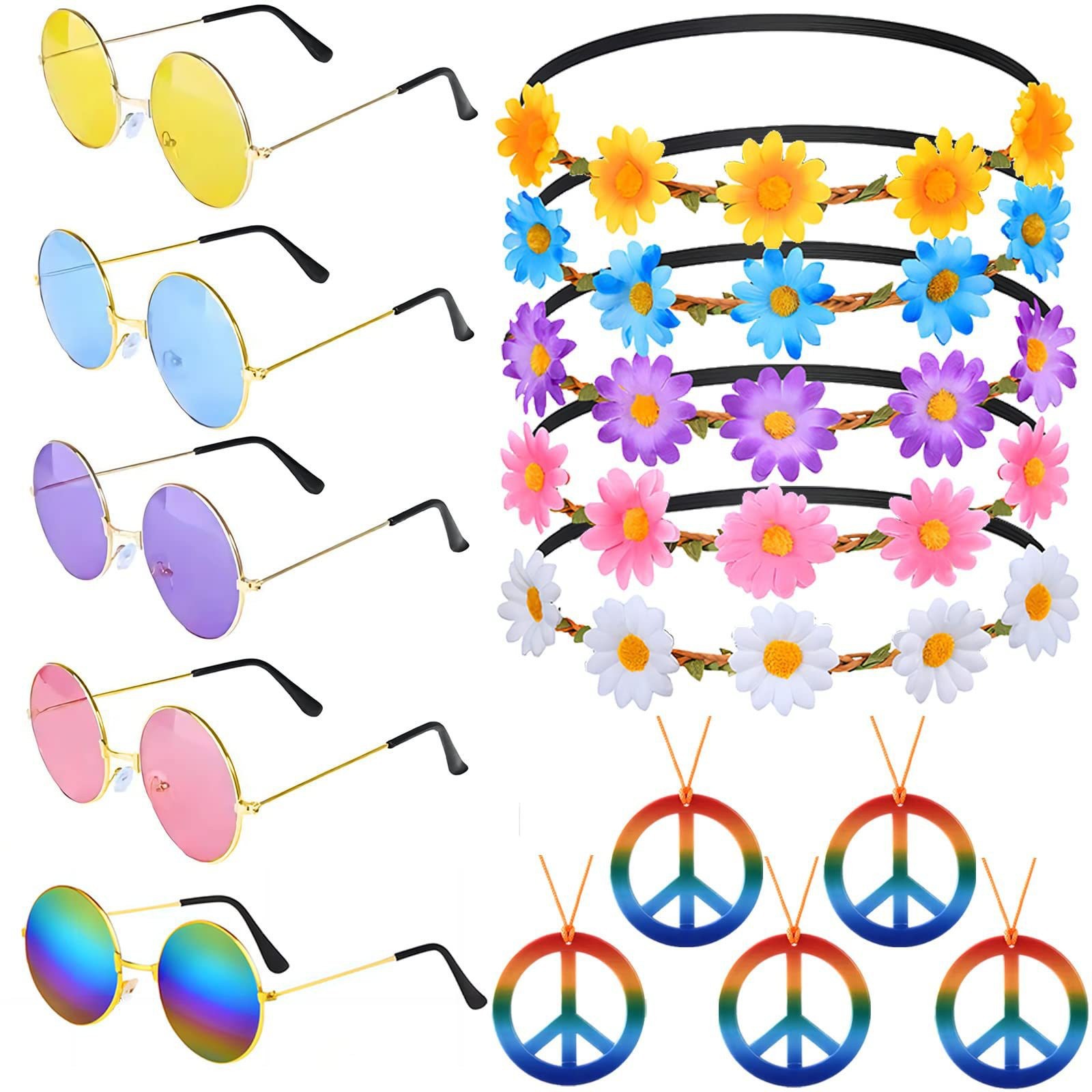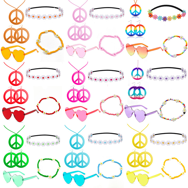 60年代ハロウィンカーニバルヒットヘッドバンドメガネピース反戦マークネックレスヒッピー5点セット