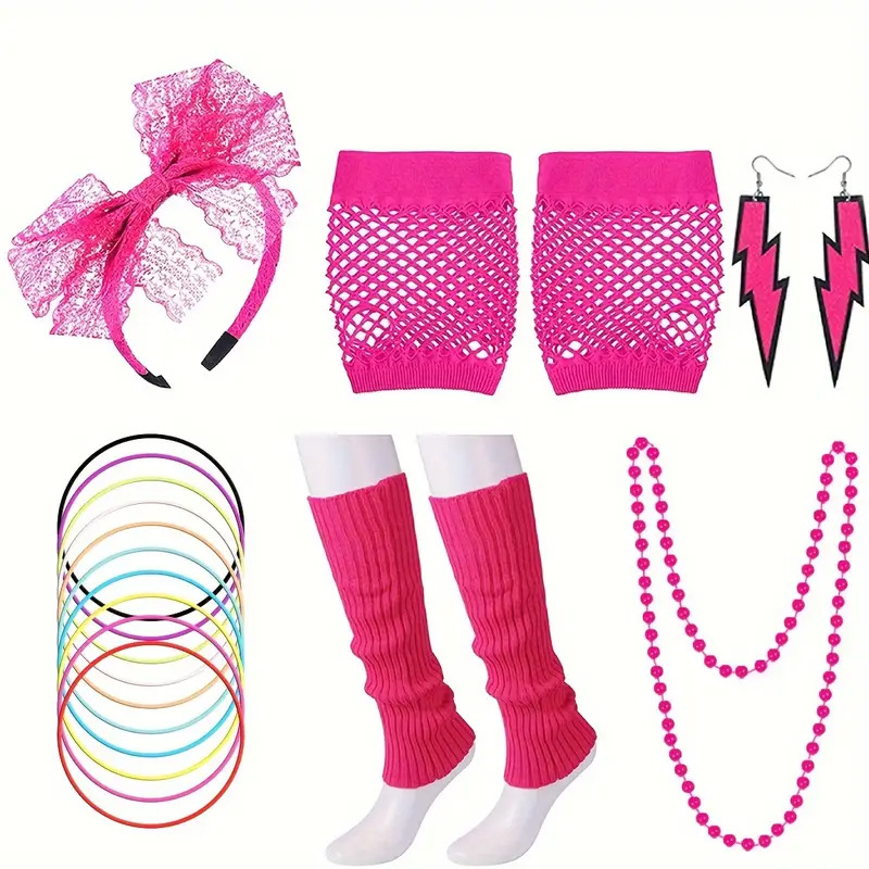 1980年代ヘッドバンド手袋足カバーネックレスイヤリングブレスレットネオン独身パーティー衣装アクセサリーセット