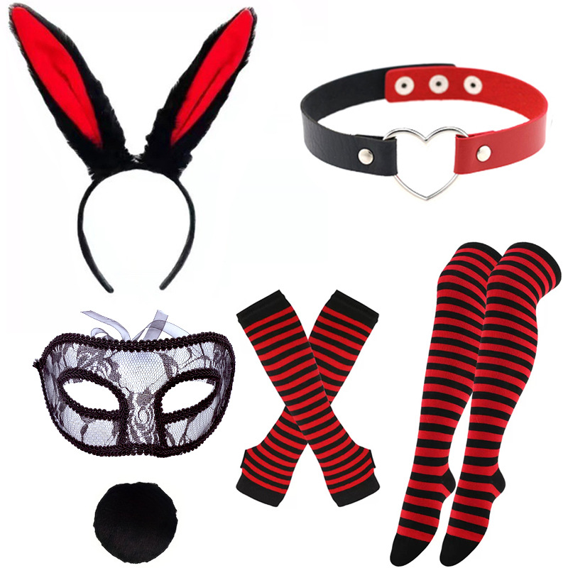 アマゾン ハロウィン イースター COS ウサギの耳 ヘッドバンド ヘッドバンド チョーカー 手袋 フットカバー テール ウサギのドレスアップ