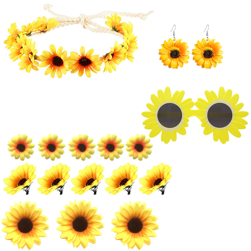 ひまわり髪饰りテーマヘッドバンドヘアクリップヒッピーデイジークラウン写真アイテムレディース女の子花嫁结婚式