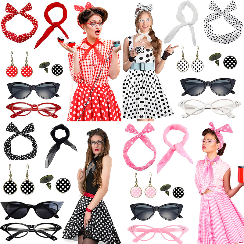 70年代ディスコアクセサリーレディース服ジュエリーディスコピアススパンコールスカーフサングラスダイヤモンドブレスレット
