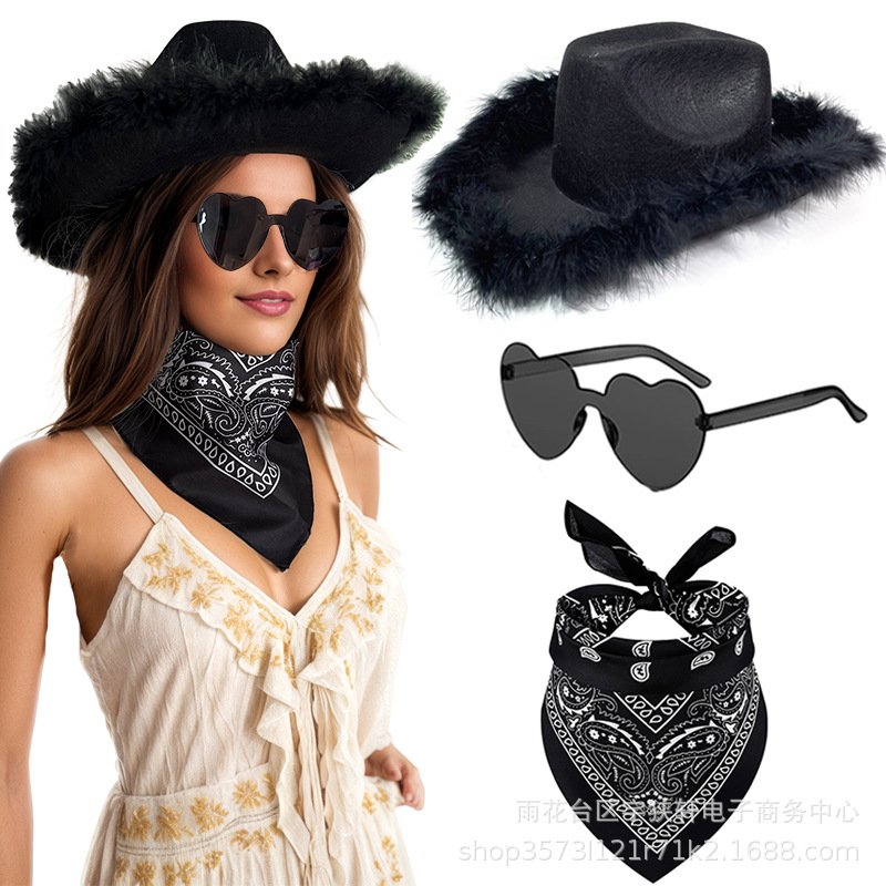 3点セット クロスボーダー 新しいウエスタンカウボーイ服アクセサリーセット スカーフ メガネ ローエッジハット ロープ付き パーティードレスアップ