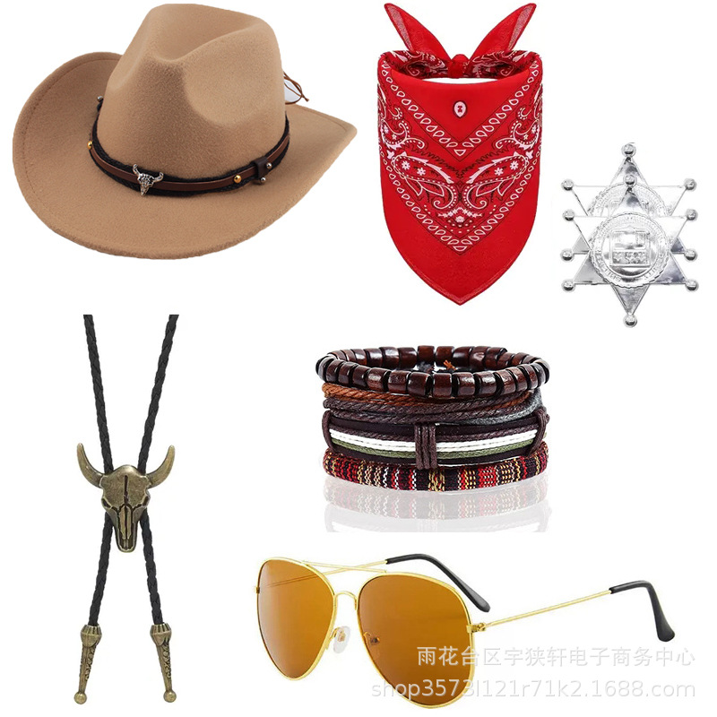クロスボーダーハロウィンウエスタンカウボーイコスチュームアクセサリーウエスタンカウボーイキットヒッピーディスコパーティー用
