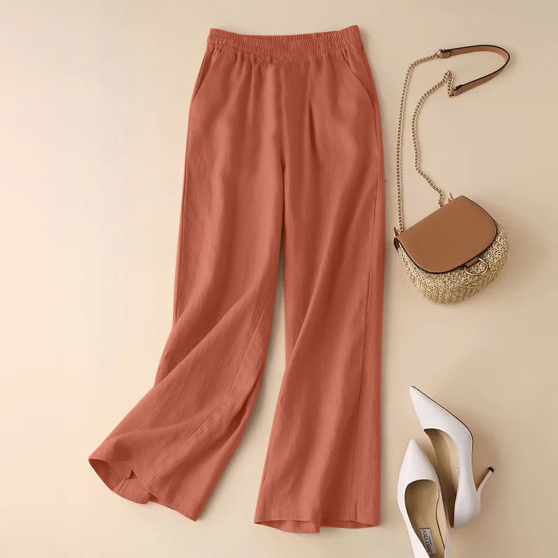 店舗やショッピングモールの婦人服綿麻ワイドパンツ、万能カジュアルルーズリネンストレートパンツ