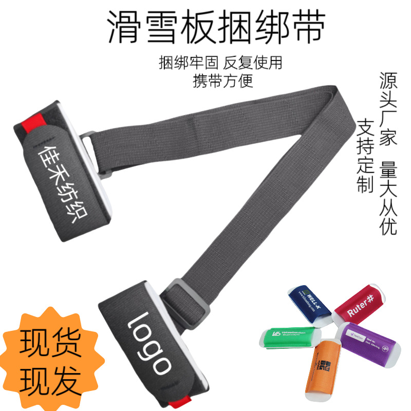 現物のスキー板のストラップのナイロンのマジックテープは調整できます。
