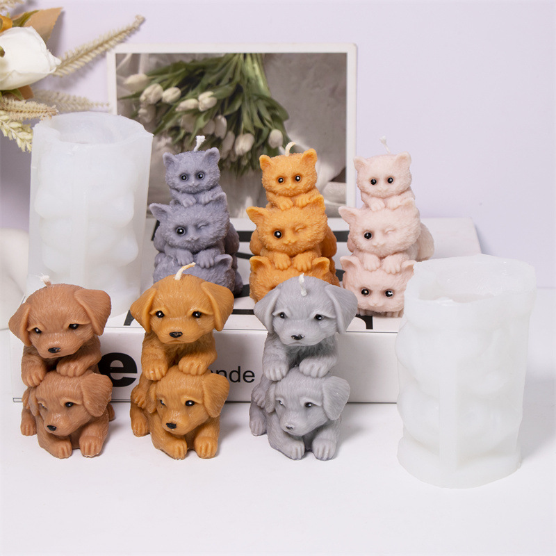 スタッキング猫ラブラドール動物シリコーン型 DIY クリエイティブ動物香りキャンドル石膏装飾品型