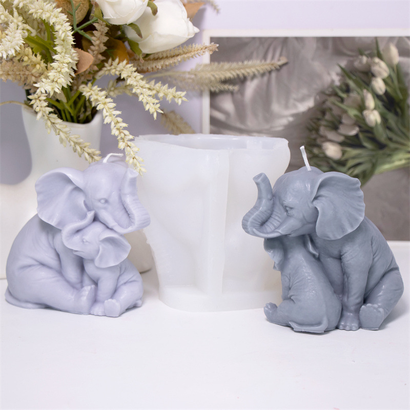 座っている母子象シリコンモールド DIY クリエイティブ動物母象と象の香りキャンドル石膏装飾品