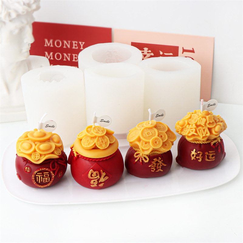 創意的な銅銭福袋の形のシリカゲルの金型DIY手作りの香薫のろうそくの石膏のケーキの装飾の焙煎の置物