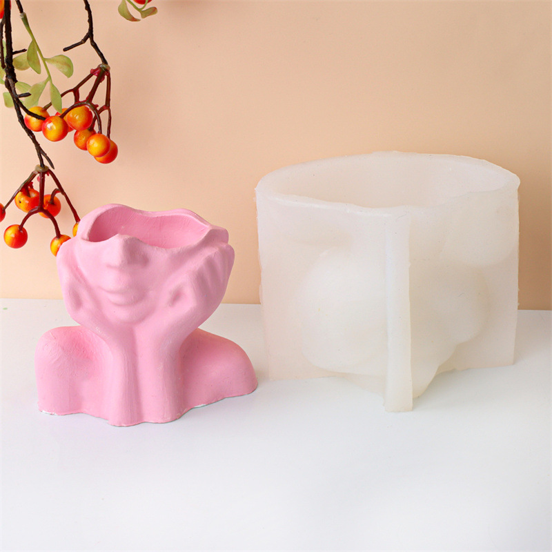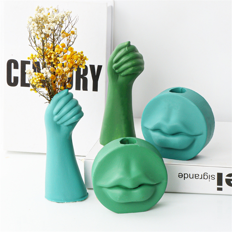現代シンプルなジェスチャー花瓶唇燭台シリコン金型diy北欧人体芸術石膏装飾置物
