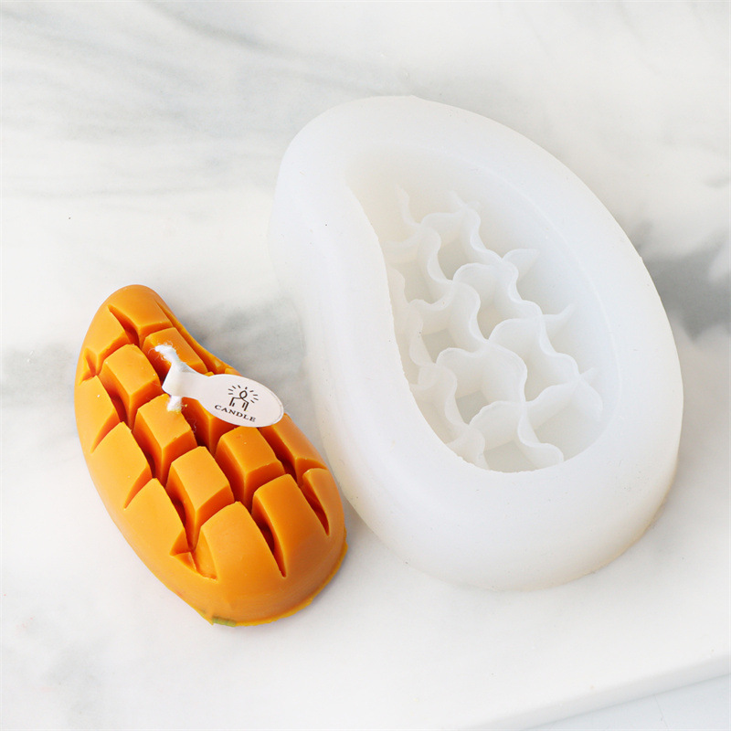マンゴーの形のシリカゲルの金型をシミュレーションして切ります。