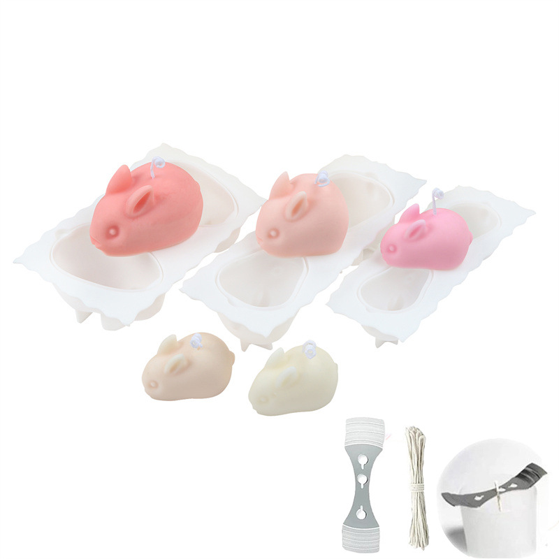 シリコンプリンウサギ二連セット金型diyアロマキャンドル焙煎鉢餅ケーキ装飾置物