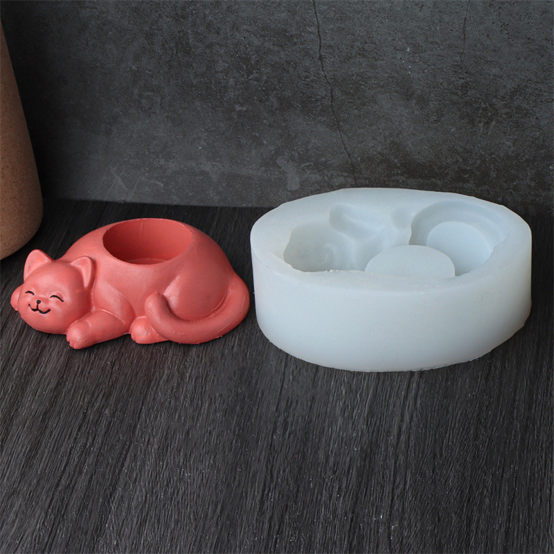 漫画笑顔子猫燭台シリコン金型diyアロマキャンドルカップ石膏滴ゴム灰皿収納ケース