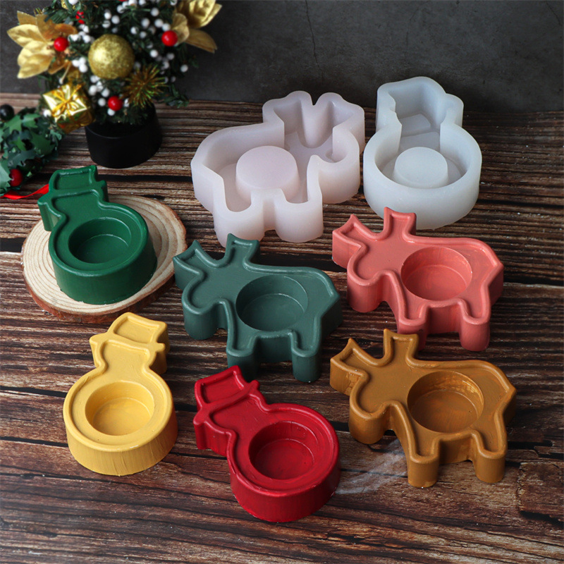 クリスマス雪だるまヘラジカ形燭台シリコン金型diyデスクトップろうそく石膏ベース装飾ケーキ