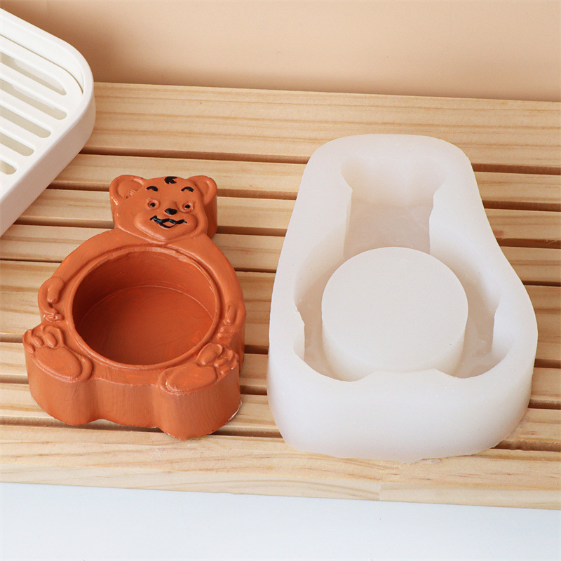 韓国版ほほえみ熊燭台シリコン金型diyアロマキャンドルカップ石膏滴ゴム灰皿収納ケース