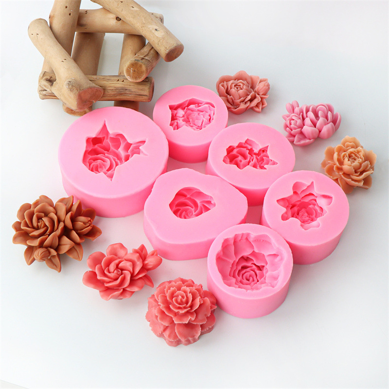 手作りのシリカゲルの花のろうそくの鋳型diyアロマの石膏の平面はあめのクチナシのバラのムースのケーキをひっくり返して焼きます。