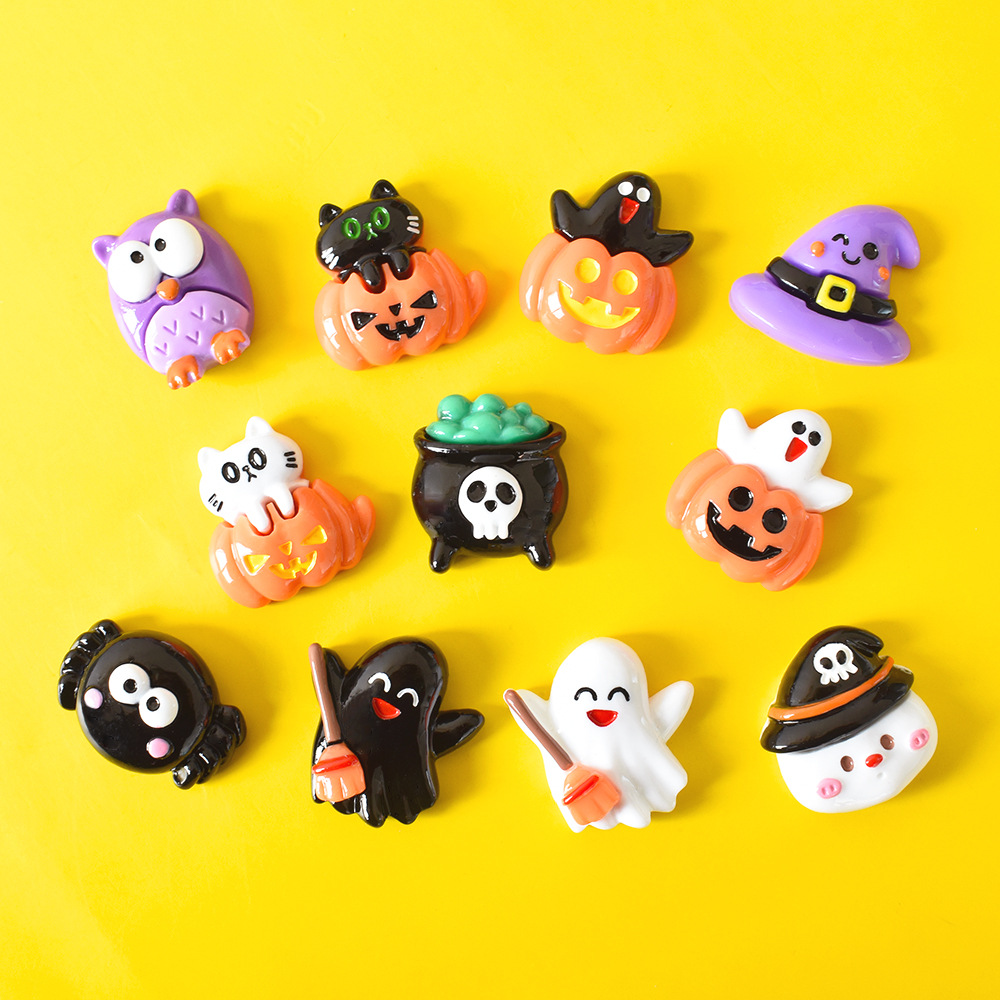 明るい面の漫画のハロウィーンのシリーズの幽霊のカボチャの猫の樹脂の装飾品の部品のdiyの髪飾りのクリームの携帯のケース