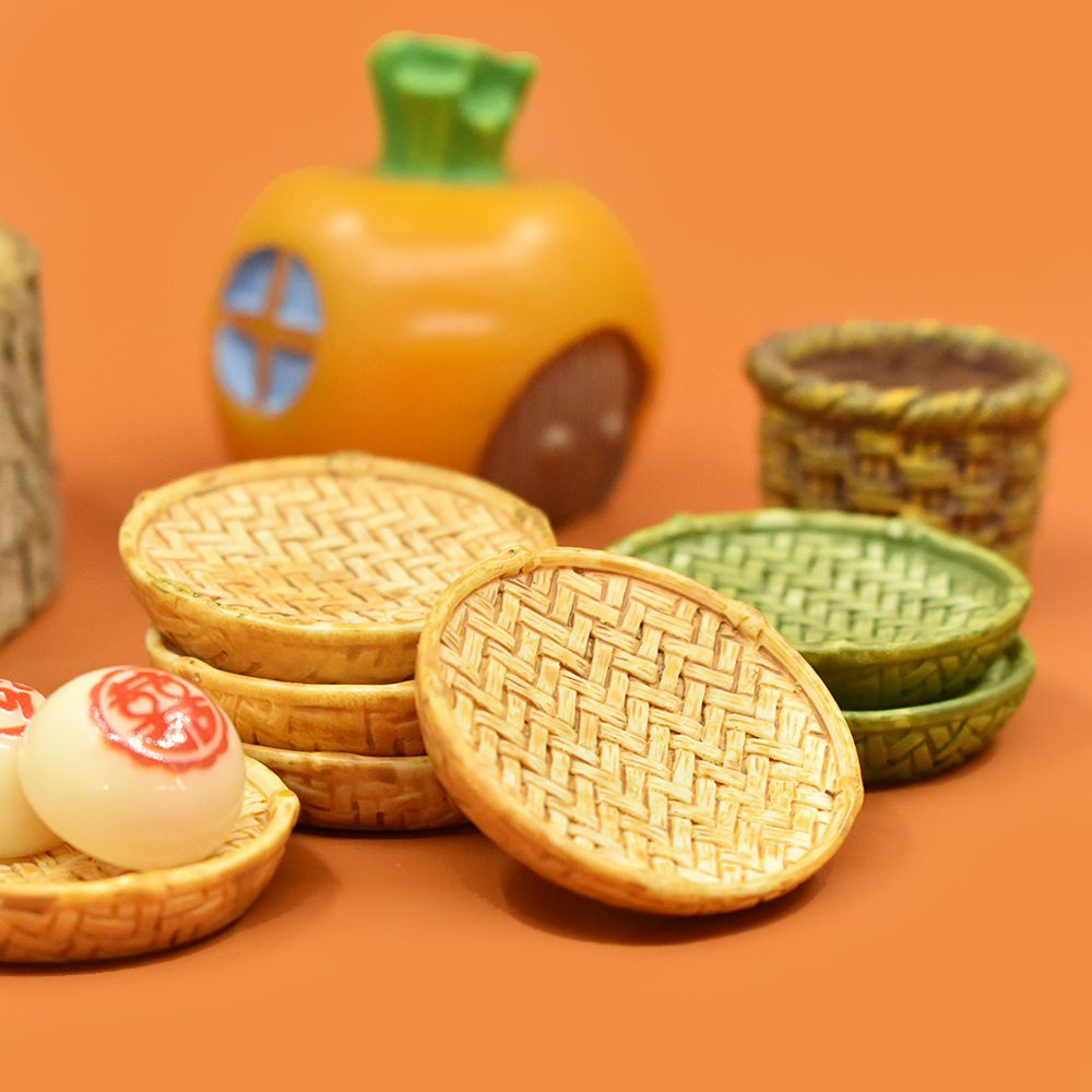 YQTミニ竹編みバスケット皿おままごとおもちゃ小置物パントレイDIYクリームゴム樹脂アクセサリー