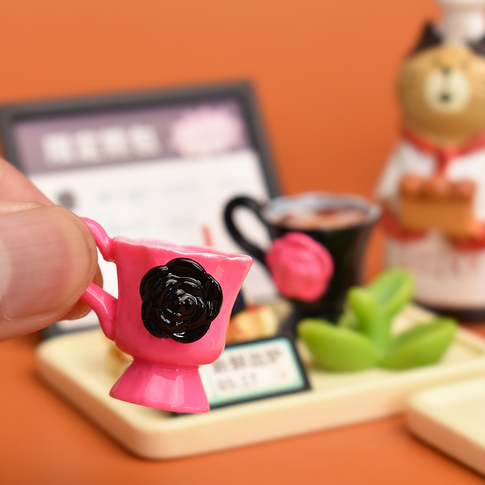 YQT フレンチローズコーヒーカップ フィギュア ドールハウス デスクトップ飾り DIYアクセサリー レジン製パーツ ごっこ遊びおもちゃ