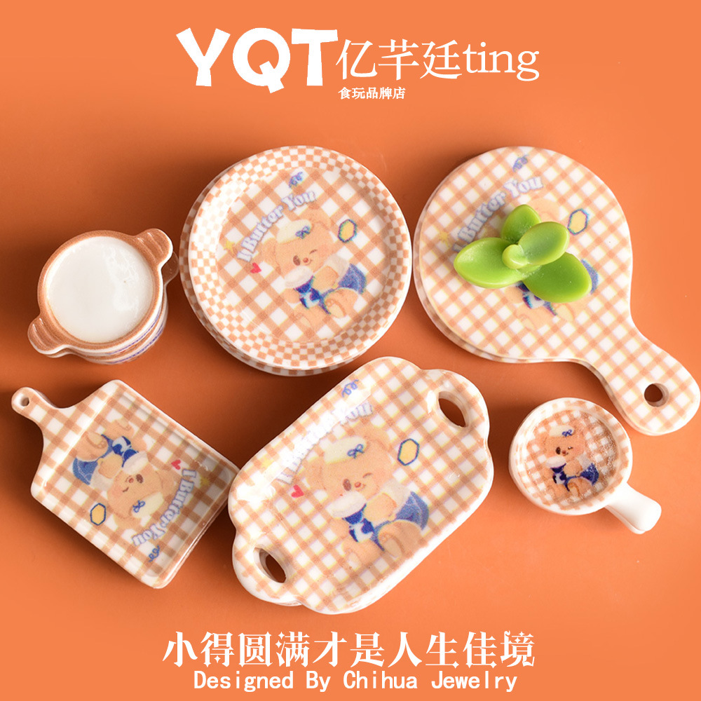 YQTミニ熊の花格食器食遊び人形屋玩具置物皿ミルク鍋diy樹脂クリームゴム部品